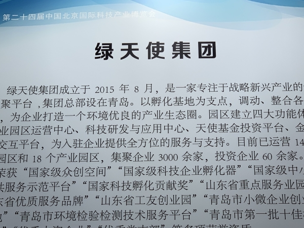 绿天使集团成立于2015年8月,是一家专注于战略新兴产业专业的集聚平台, 集团总部设在青岛。以孵化基地为支点,调动、整合各方资源,为企业打造一个环境优良的产业生态圈。园区建立四大功能体系:产业园区运营中心、科技研发与应用中心、天使基金投资平台、金融信息交互平台,为入驻提供全方位的服务与支持。目前已运营14个创业园区和15个产业园区,集聚企业1000余家,投资企业60余家。园区已荣获“国家级众创空间”“国家级科技企业孵化器”“国家级中小企业公共服务示范平台”“国家科技孵化贡献奖”“山东省重点服务业园区”“山东省优质服务品牌”“山东省工友创业园”“青岛市小微企业创业创新基地”“青岛市环境检验检测技术服务平台”“青岛市第一批十佳标杆孵化器”“优秀内资企业”“优秀党支部”等多项荣誉资质。