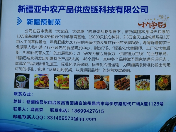 市场拓展方面,一是为旅游景区提供制定了一站式的综合服务体系,定制专用餐车,户外旅行套餐包等,同时提供设备选型、机械出品、操作培训及维护等服务,辅助景区完成产品集约化生产、人员集约化操作,为旅游行业一次解决团餐、职工餐、散客餐饮及人工耗费多、效率低、出餐慢等难题。目前已与那拉提、喀纳斯、葡萄沟、天池及喀拉峻谈成合作。同时,公司为旅游市场打造了“疆脾气”品牌(已成功研发:椒麻鸡系列产品、米粉系列产品、自热抓饭系列产品等)疆味美食伴手礼,让新疆礼物走向千家万户。二是在专业化中央厨房和运输配送系统的支持下,通过亚中集团资源,以单店投入低、使用面积小、无厨师化、无油烟化、10分钟吃到新疆美食为核心策略,全力推进一二线城市小馋臣门店连锁加盟工作,将新疆日常美食快速带入内地餐饮市场。目前公司量产的小馋臣椒麻鸡、抓饭、拌面料理包已销往上海、北京、广州及西安等地。