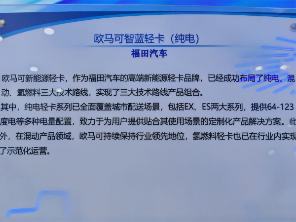 > 福田汽车 欧马可智蓝轻卡(纯电)